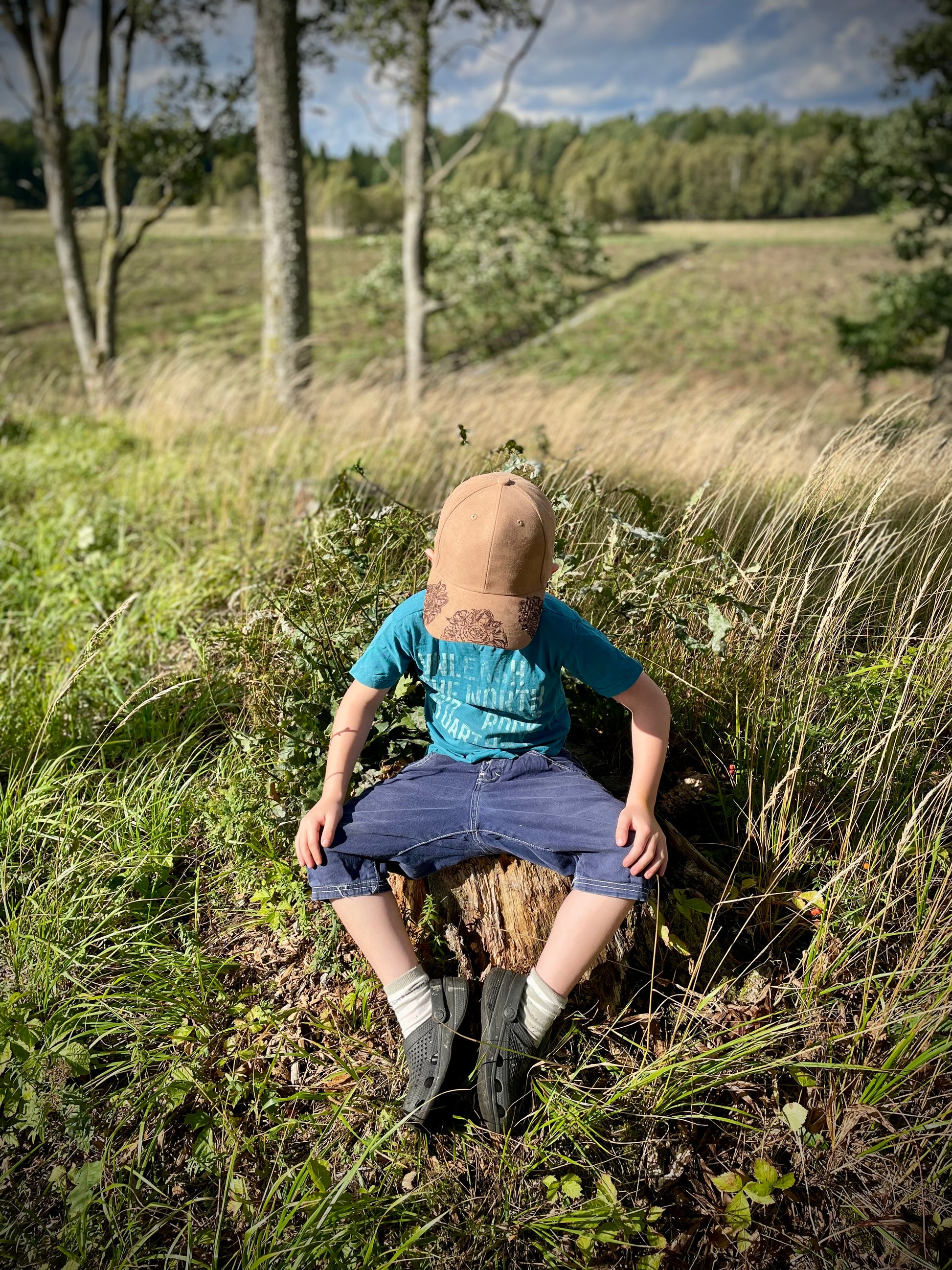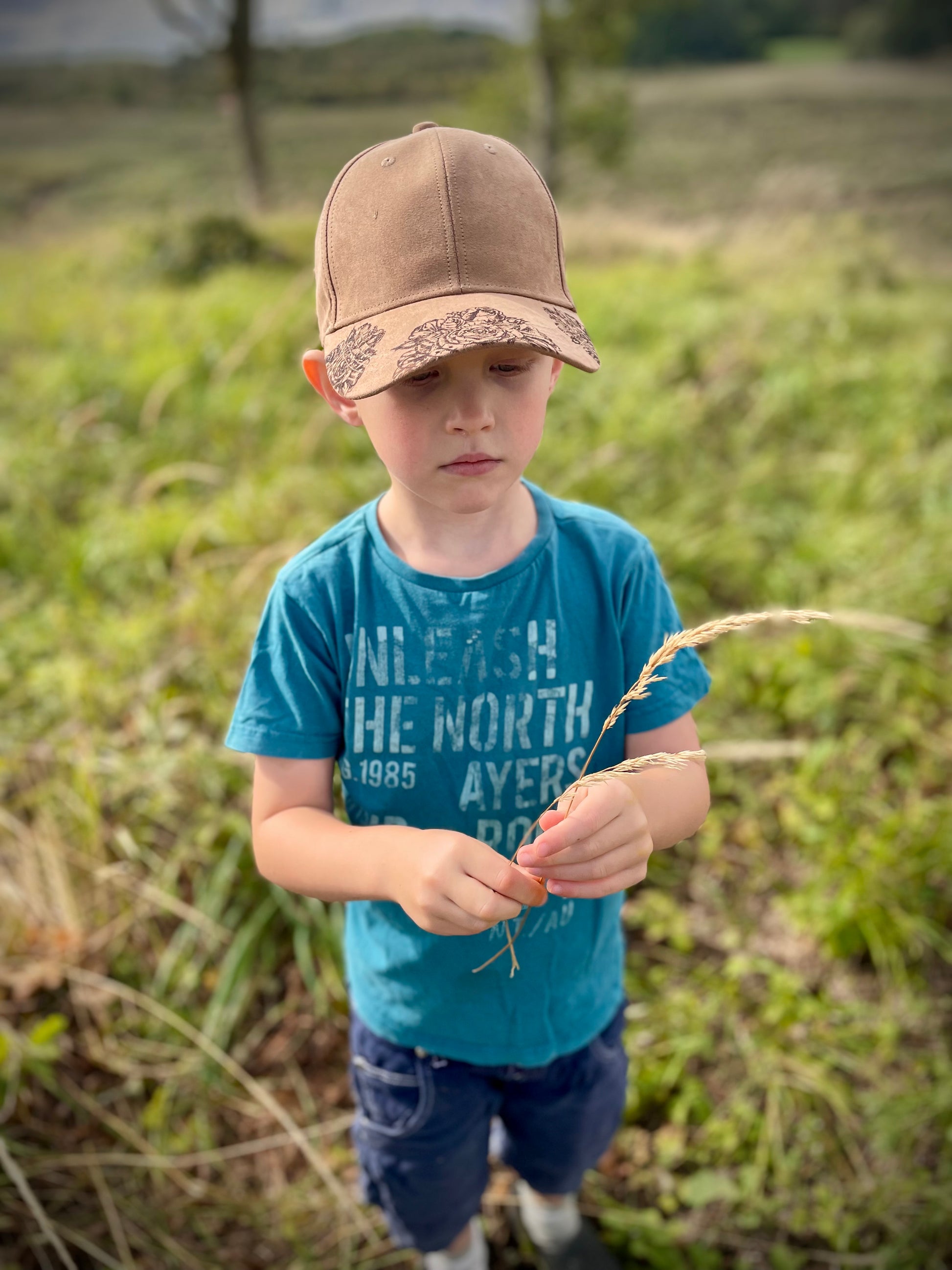 Basebollkeps i mocka med underbara brända rosor. Justerbar storlek, passar både till barn och vuxna.