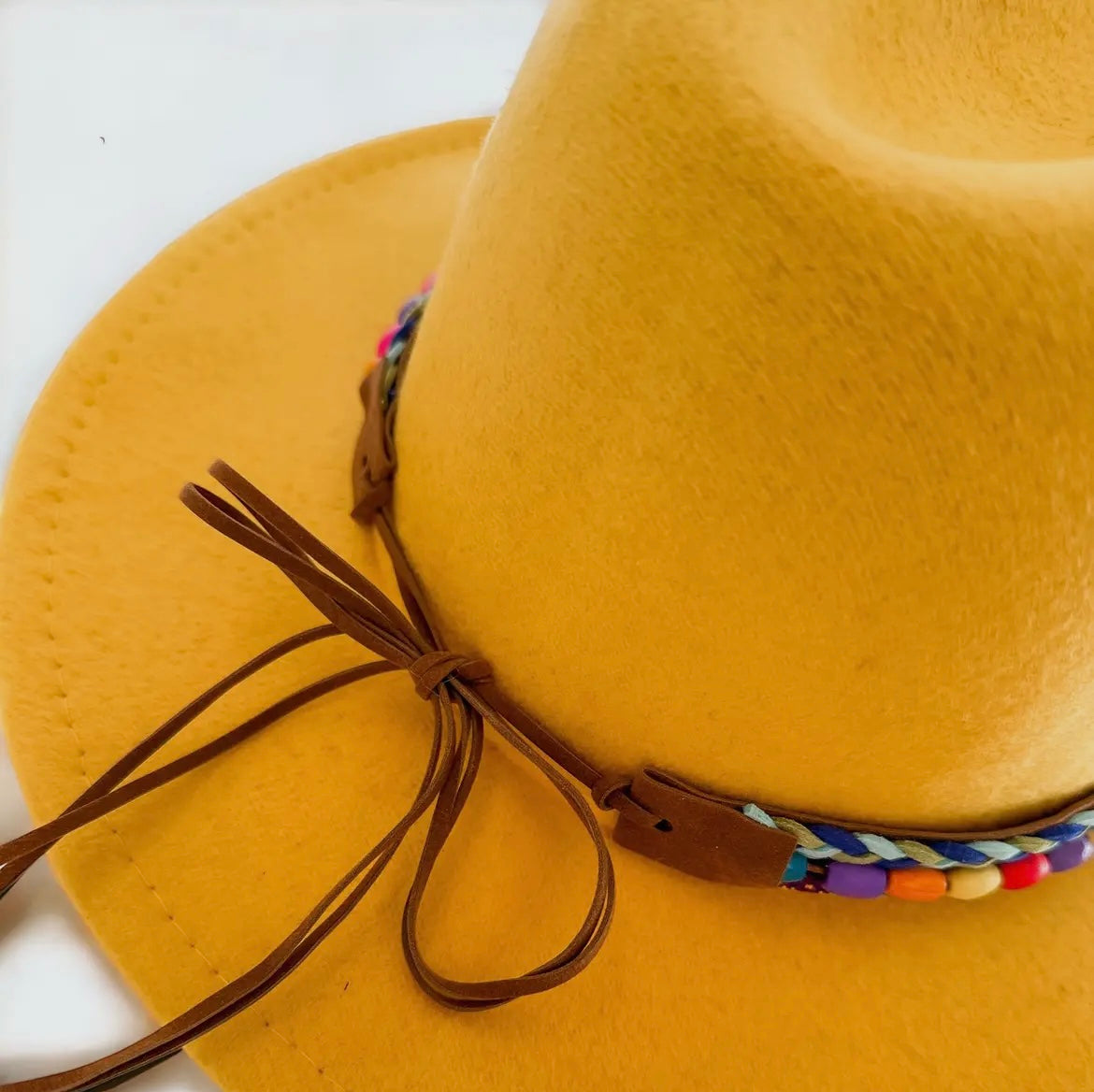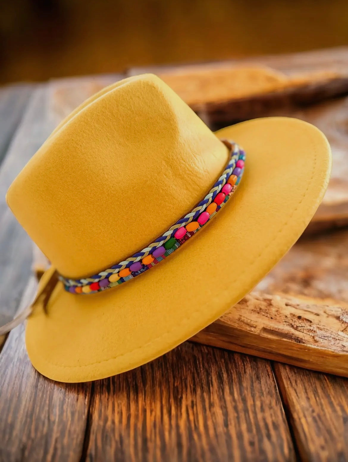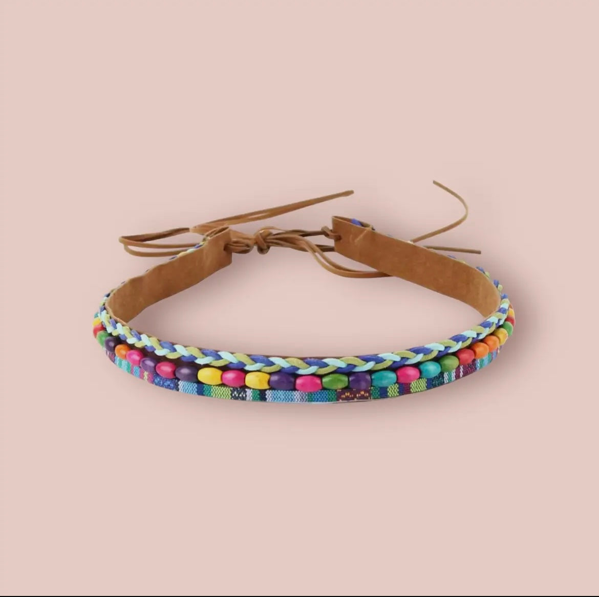 Hattband med flerfärgade träpärlor. Passar alla hattar, justerbart.